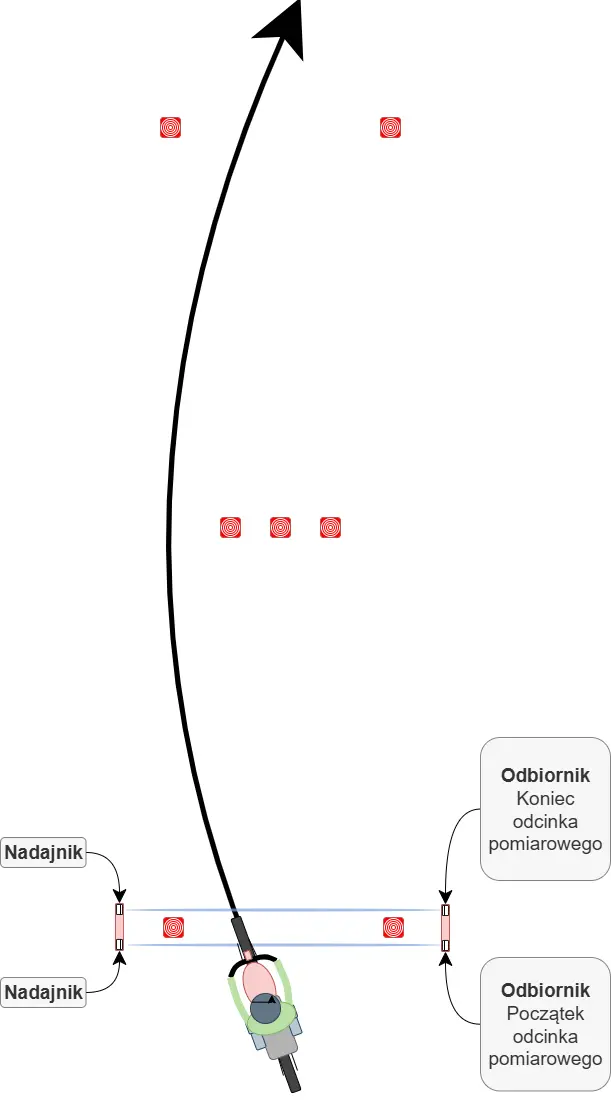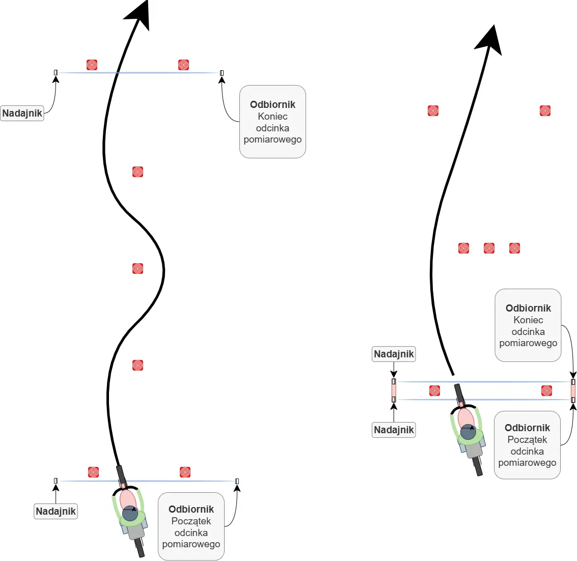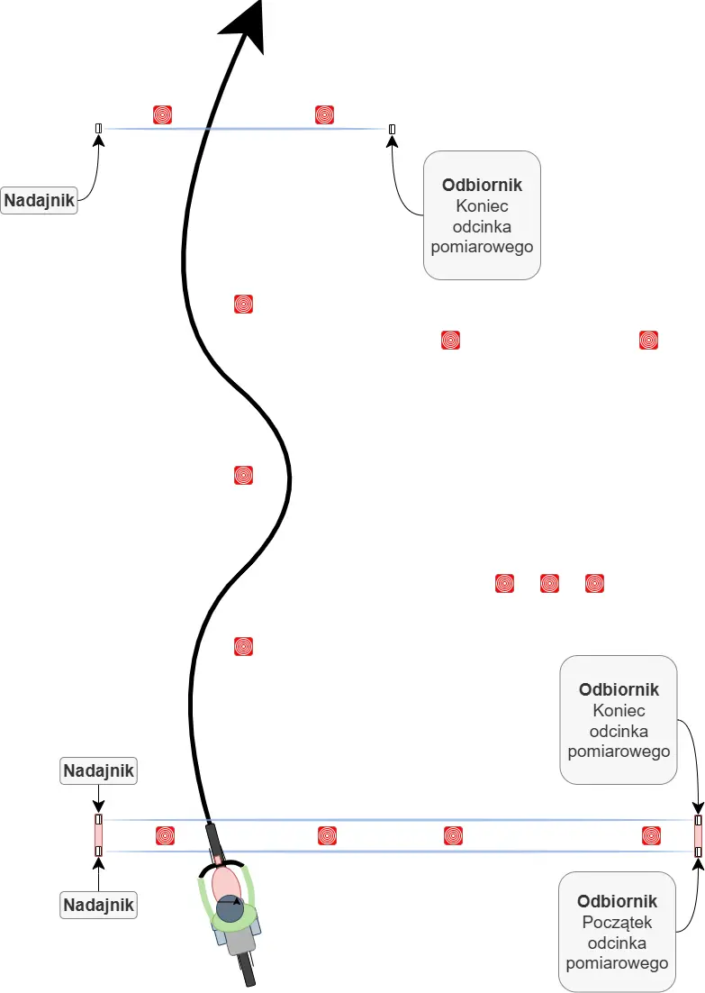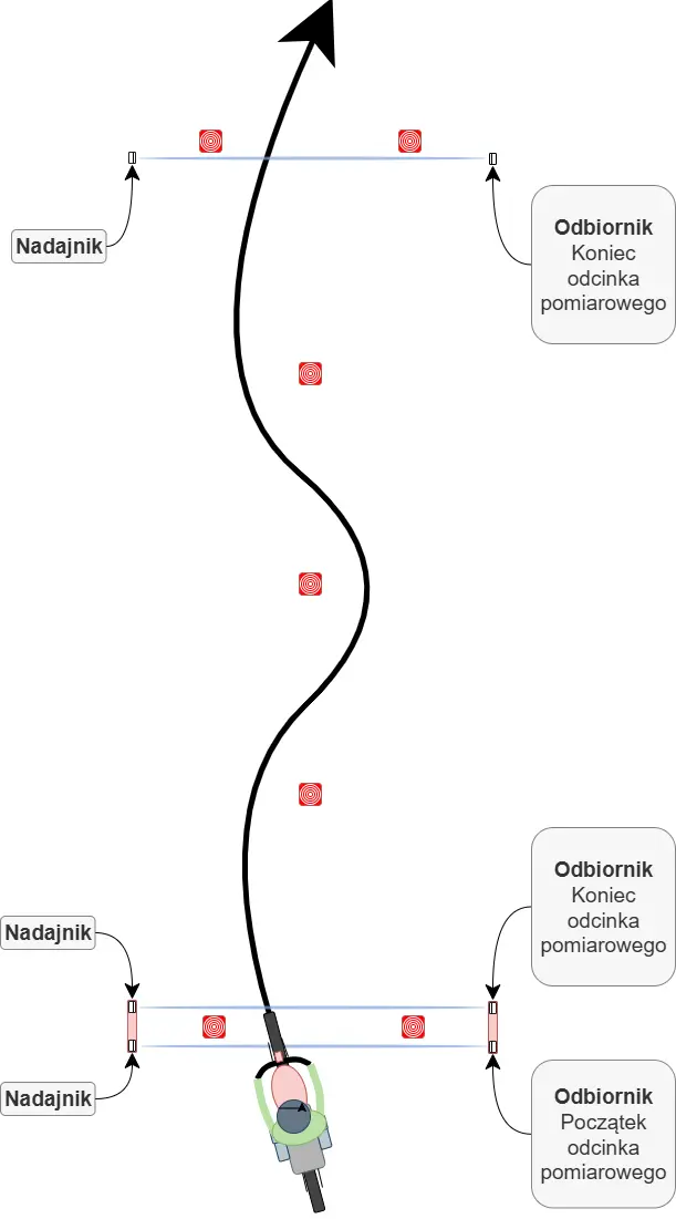 - blisko siebie (45 cm) – uzyskujesz pomiar prędkości najazdowej,
